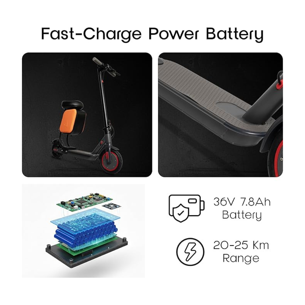- Long-Lasting Battery: 36V 7.8Ah lithium battery offers up to 25km riding range per charge.