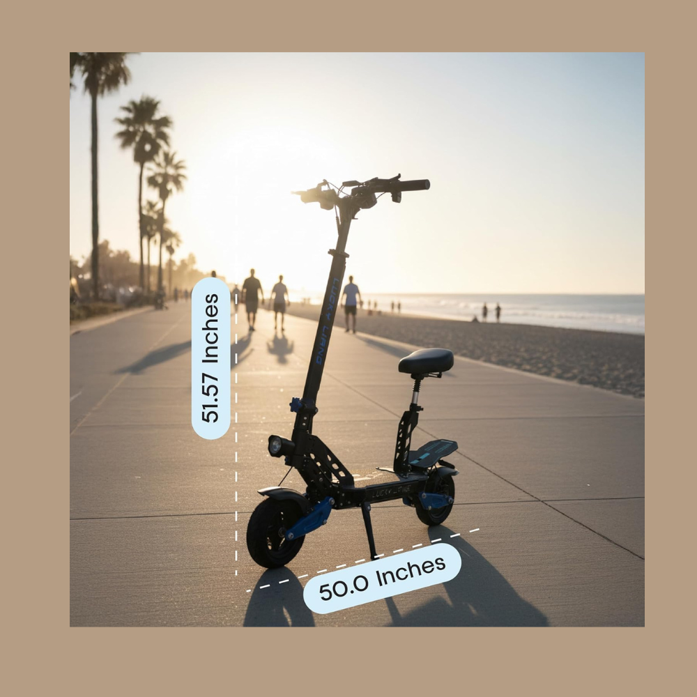 Designed for both urban commuting and off-road adventures, the L3 Pro features dual suspension and rugged off-road tires that provide excellent stability and shock absorption on rough terrain or city streets. The comfortable detachable seat allows longer rides without fatigue, while the foldable frame makes it easy to store or transport in your car.