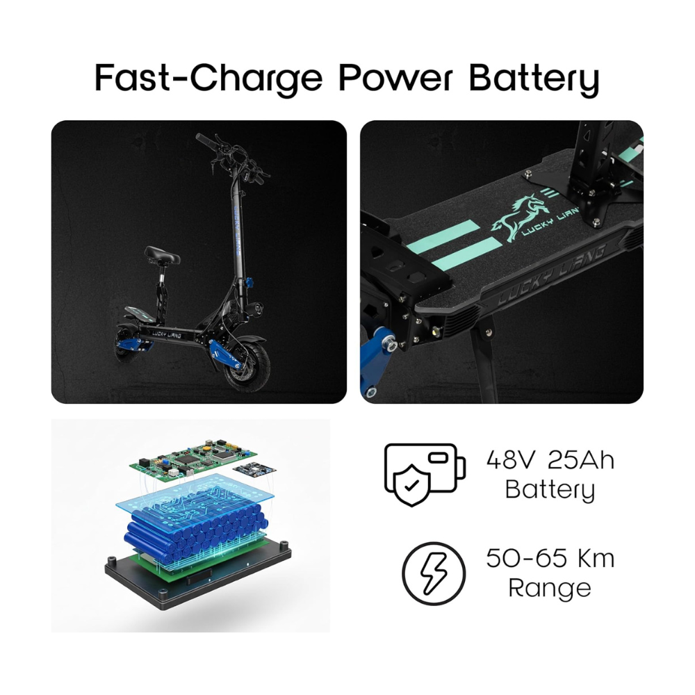 The Lucky Liang L3 Pro Electric Scooter is built for riders who want power, long range, and ultimate riding comfort. Equipped with a high-performance 1500W brushless motor and a 48V 25Ah lithium battery, this electric scooter delivers impressive acceleration, reaching speeds of up to 60 km/h and offering a riding range of up to 65 km on a single charge.