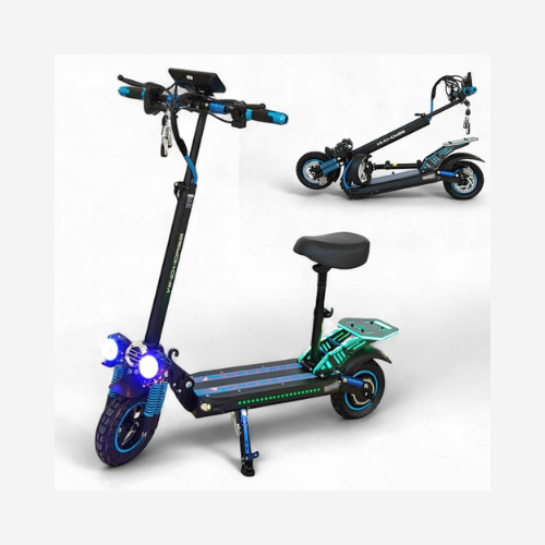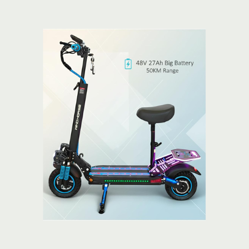 The WindHorse H5 Plus electric scooter upgrades urban travel with enhanced features and performance while maintaining the original’s affordability and portability. Powered by a robust 500W brushless motor, it reaches speeds of 30-35 km/h. Its 48V 15Ah lithium-ion battery delivers a range of 40-60 km per charge, depending on conditions. Built with a lightweight aluminum alloy frame, it folds compactly for easy transport. The scooter offers pneumatic or solid tires with improved suspension for a smooth ride, an advanced LCD display, dual braking for safety, and bright LED lights for visibility. Additional features include multiple riding modes and a USB charging port.